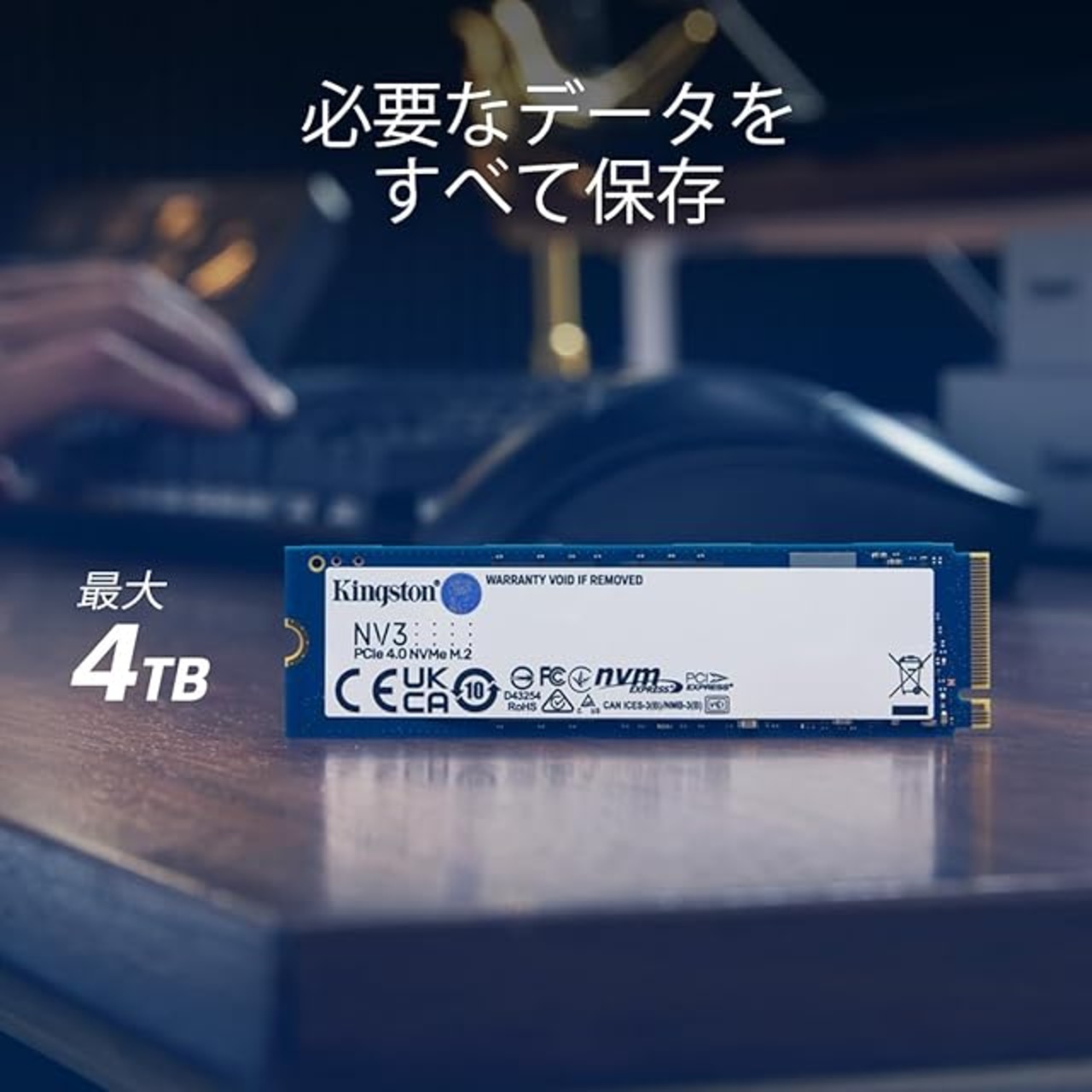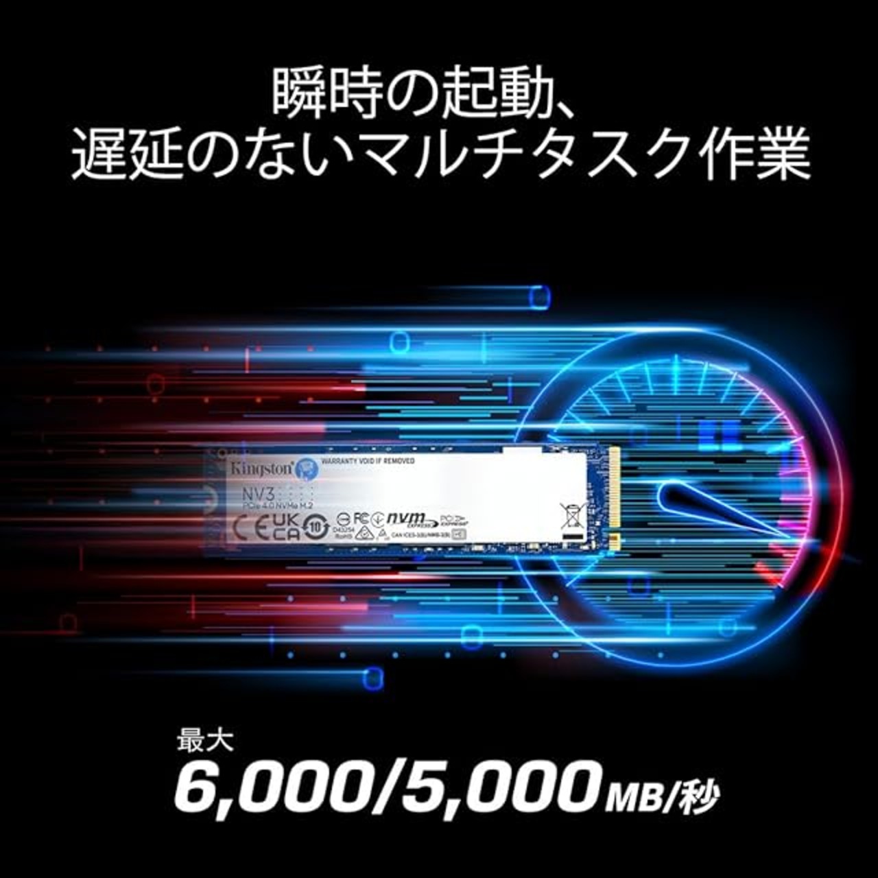 商品名:キングストンテクノロジー Kingston SSD NV3 2TB PCIe Gen 4.0 x4 最大6,000MB/秒 M.2 2280 NVMe 正規代理店品 5年 SNV3S/2000G