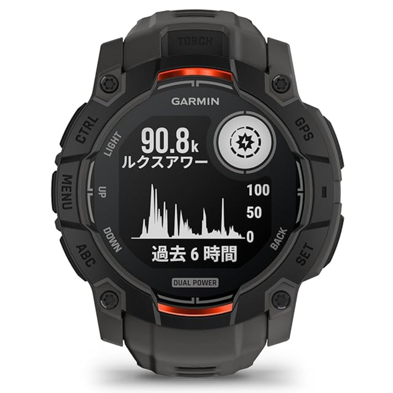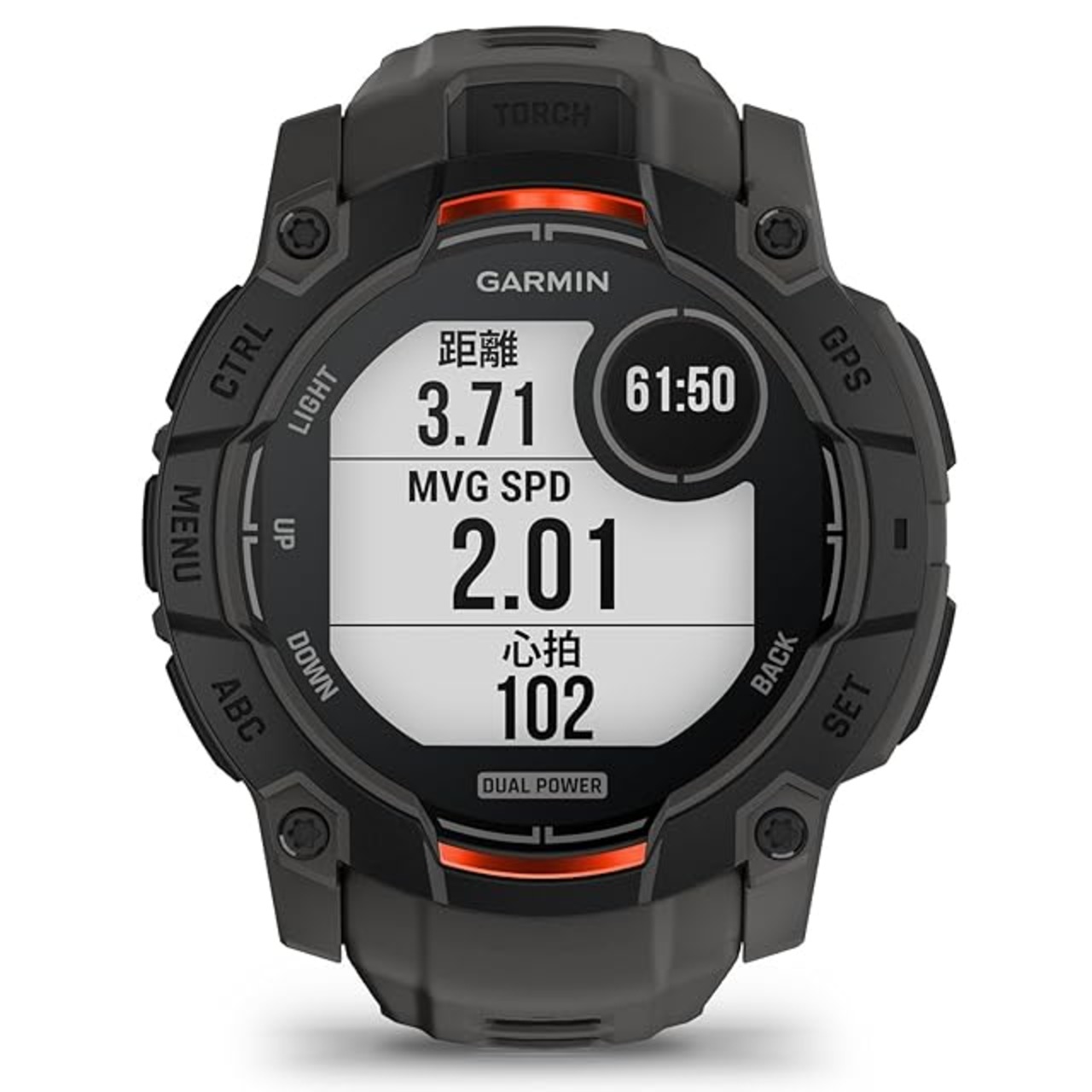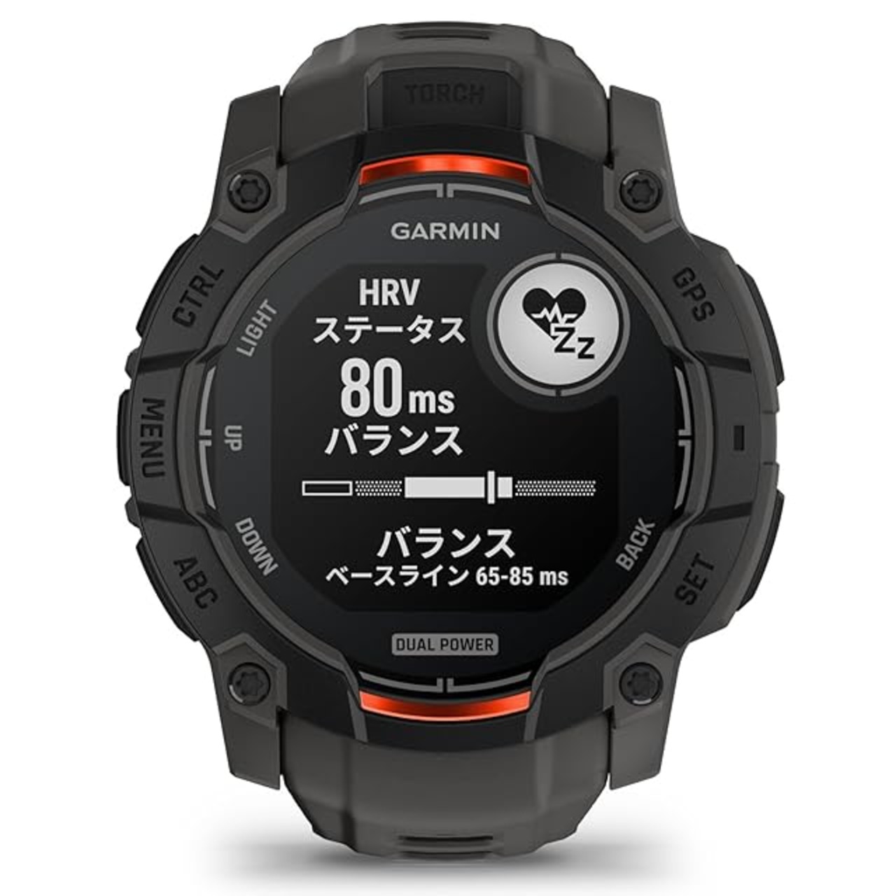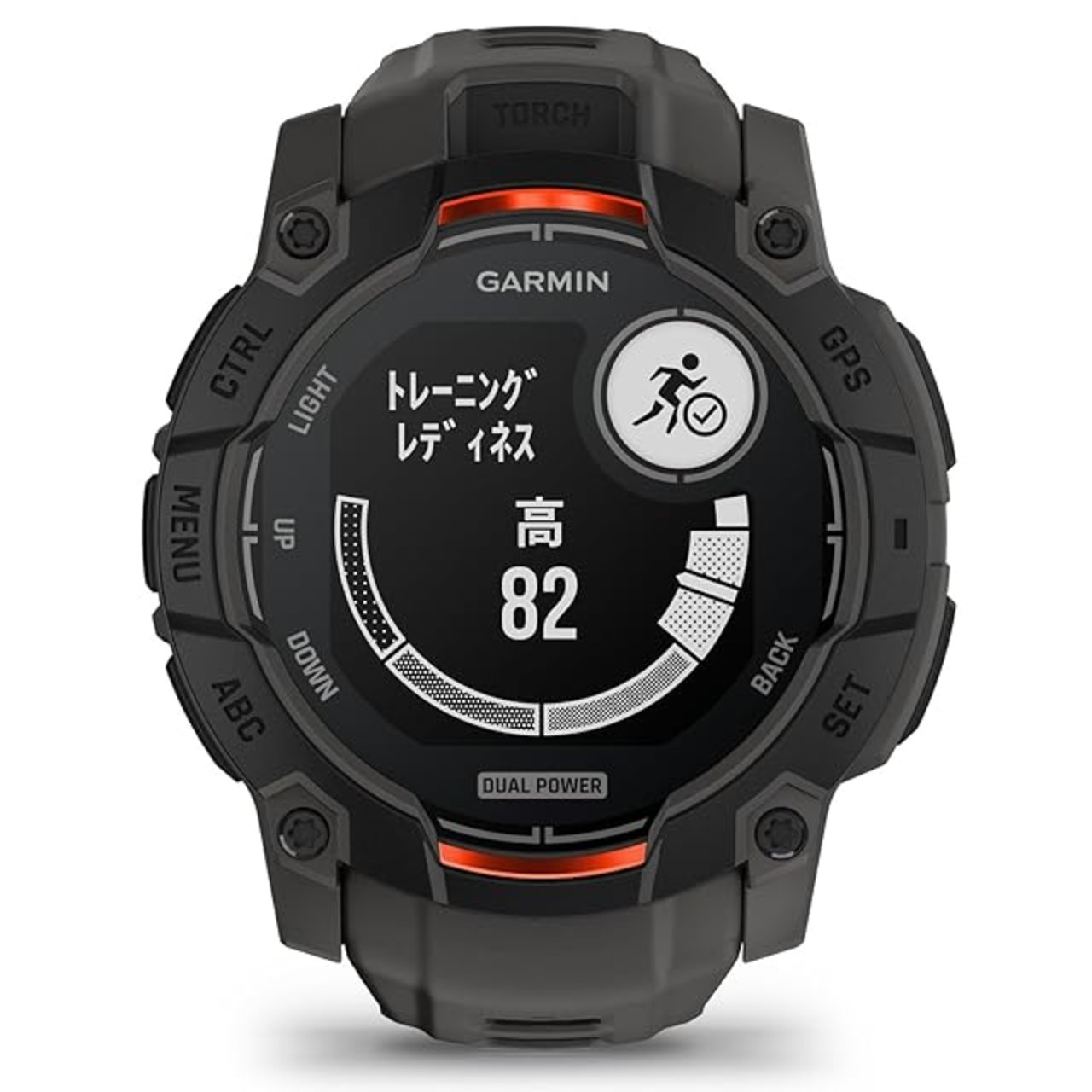 商品名:ガーミン(GARMIN) Instinct 3 50mmサイズ Dual Power Black Bezel with Charcoal Band 010-02935-30 【ランニング・ゴルフ・登山・サイクリング等30種類以上対応】【Android/iOS対応】【Suica機能搭載】【ビジネスシーンもOK】【日本正規品】
