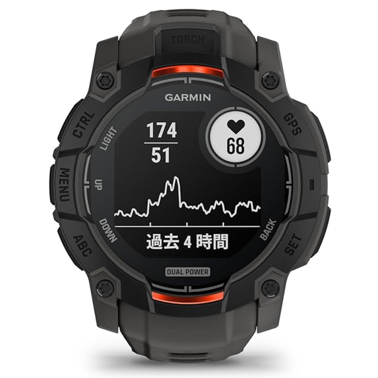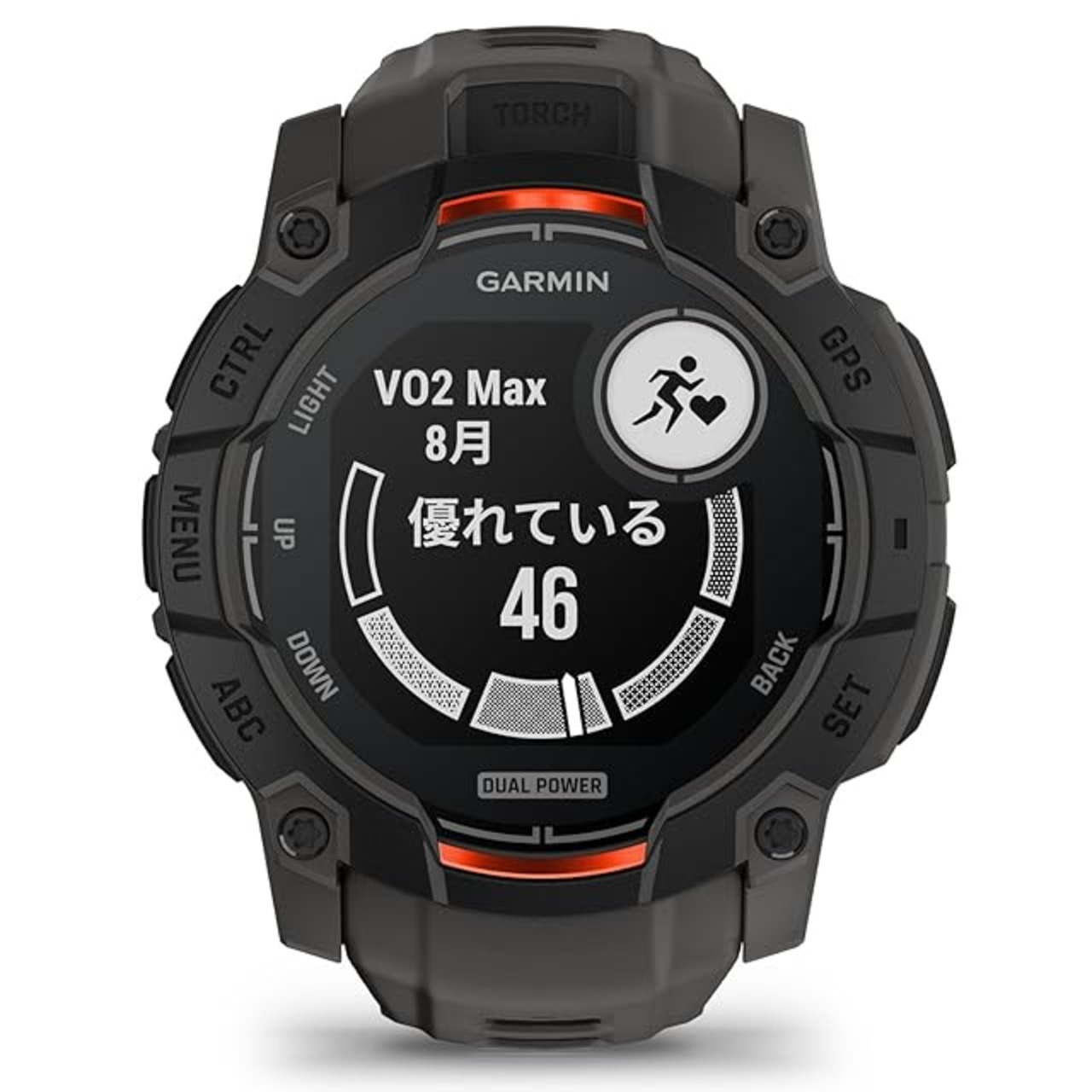 ガーミン(GARMIN) Instinct 3 50mmサイズ Dual Power Black Bezel with Charcoal Band 010-02935-30 【ランニング・ゴルフ・登山・サイクリング等30種類以上対応】【Android/iOS対応】【Suica機能搭載】【ビジネスシーンもOK】【日本正規品】