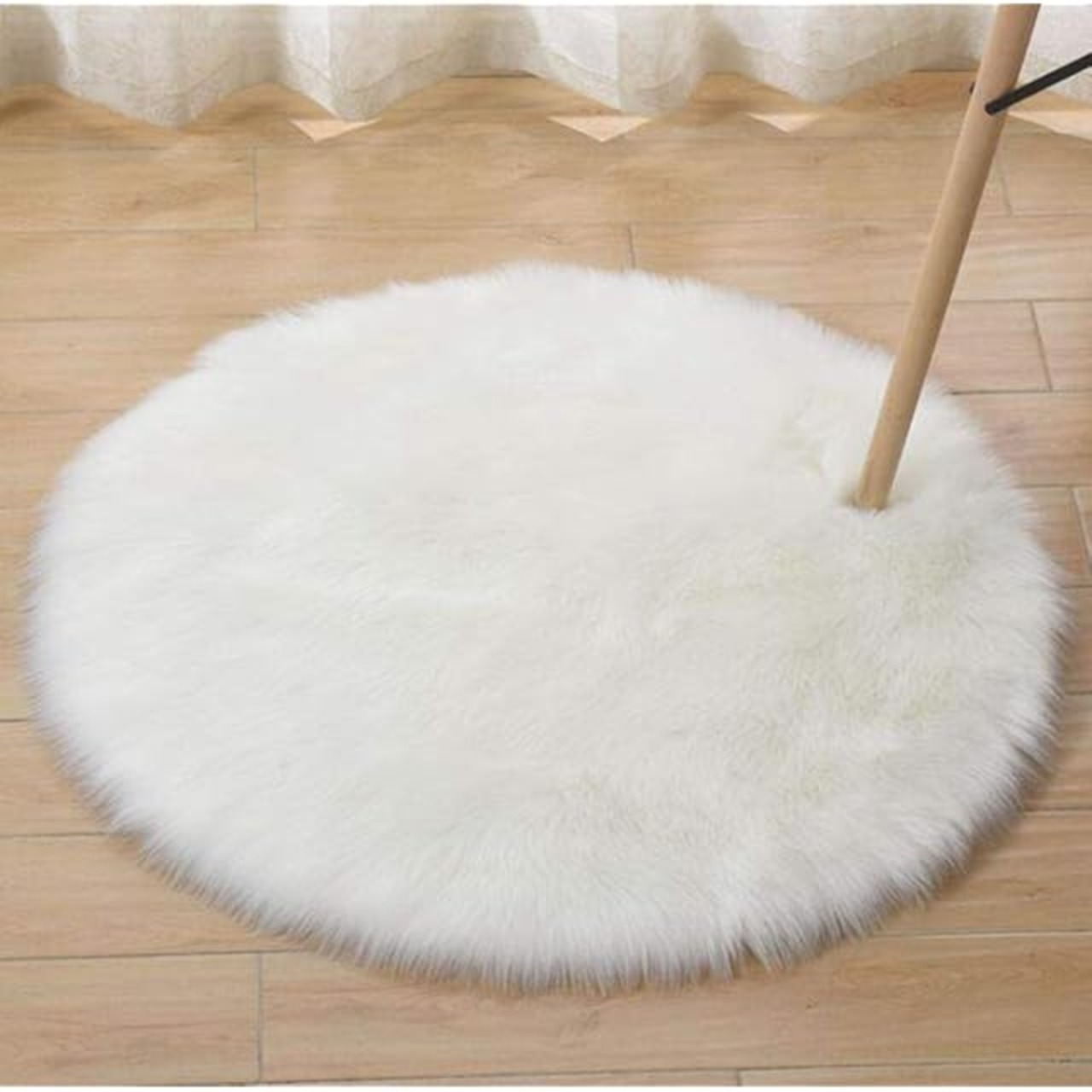 商品名:円形 洗えるラグ カーペット ふわふわ 丸型 滑り止め付 オールシーズン ラグマット 手触り優しい 長毛 絨毯 冷房 床暖房対応 折り畳み ラグマット (40cm, ホワイト)