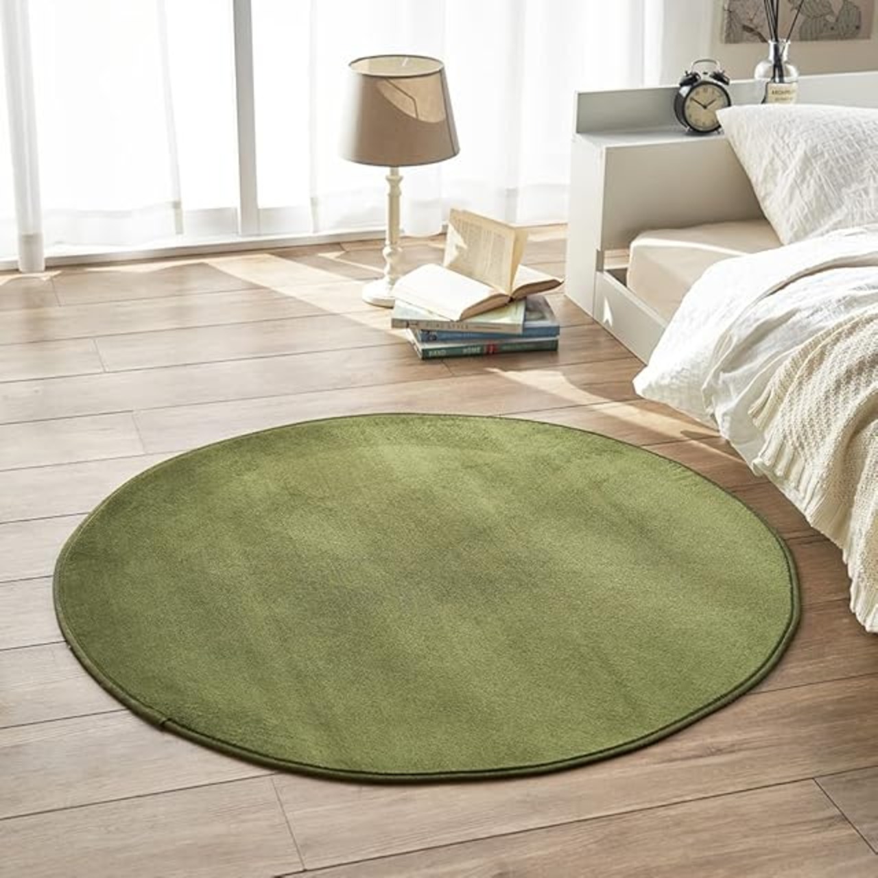 アイリスプラザ フランネルラグ グリーン 円形 100㎝ 滑り止め付き ラグ 洗える ラグカーペット マット カーペット対応 防ダニ フランネル さらフワ触感 おしゃれ 北欧 じゅうたん