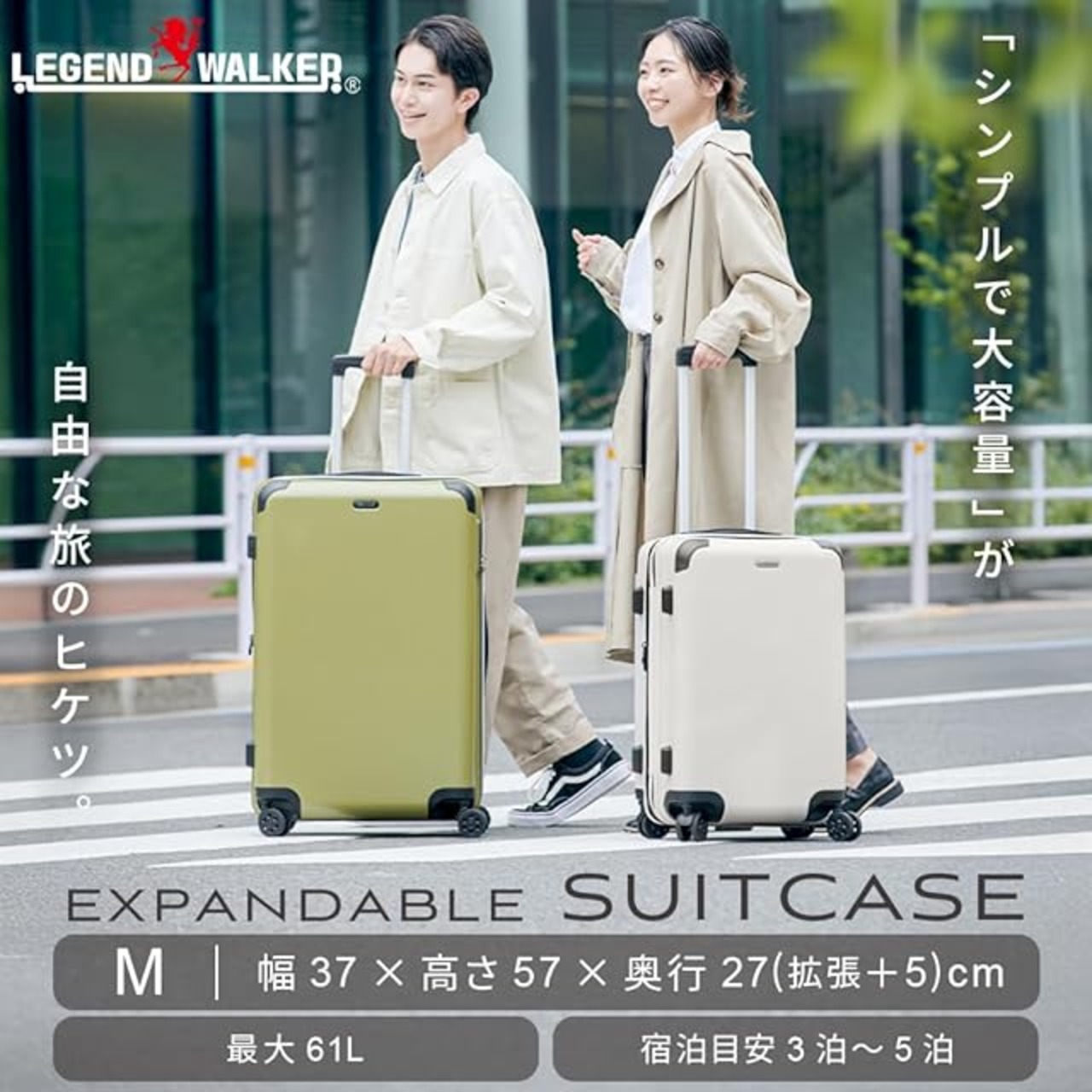 アイリスプラザ(IRIS PLAZA) 【レジェンドウォーカー(LEGEND WALKER)】 スーツケース キャリーケース Mサイズ 容量拡張機能付きで旅先で荷物が増えても対応可能タイプ 耐衝撃 グリーン 5515-57