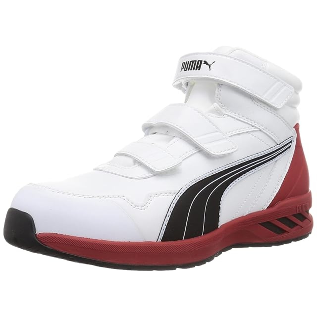・先芯樹脂なのに軽さを維持したまま大幅に耐久力が向上。見事A種認定を受けたプロスニーカー。<br>・脱ぎ履き楽ちん面ファスナー(マジックテープ/ベルクロ)<br>・履き心地抜群のクッション性。<br>・通気性に優れた素材と設計の取り外し可能インソールで衛生的。<br>・最大300℃の高温に約60秒も耐えられ、油による劣化を防ぐ耐油性能も備えたアウトソール。<br><br>一級品のクオリティながら買いやすいベストプライス!!<br><br>商品仕様<br>ブランド : PUMA SAFETY プーマ セーフティー<br>アッパー : 人工皮革 (マイクロファイバー)<br>アウトソール : 合成底<br>先芯 : グラスファイバー強化合成樹脂<br>ワイズ : 3E<br>サイズ : 25cm / 25.5cm / 26cm / 26.5cm / 27cm / 28cm<br>ヒール : 約3.5cm<br>カラー : 白 黒 赤 ホワイト ブラック レッド ホワイト&レッド<br>タイプ : プロスニーカー(プロテクティブスニーカー) JSAA A種認定 衝撃吸収 耐油性能 軽量<br>その他特徴 : 633520 633530 633540 633560 Rider 2.0 Mid ライダー ミッドカット 小さいサイズ 大きいサイズ 作業靴 仕事靴 男性用 紳士靴 父の日 プレゼント おしゃれ オシャレ 春 夏 秋 冬 ロンプシュー 靴<br><br>【スタッフAの着用感想】<br>普段着用するビジネスシューズ(26.5cm)と同じサイズの26.5cmを選びました。<br><br>【試着したスタッフAの足の形】<br>足長:約26.0cm<br>足幅:約11.0cm<br>足囲:約25.0cm<br><br><b>※サイズ感は個人の感想です。参考程度にお願いします。</b>