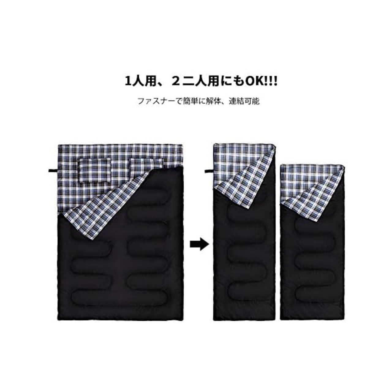 商品名:CANWAY 寝袋 2人用 防水シュラフ スリーピングバッグ 封筒型 キャンプ 連結解体可能 枕2つ・収納パック付 フランネル ブラック