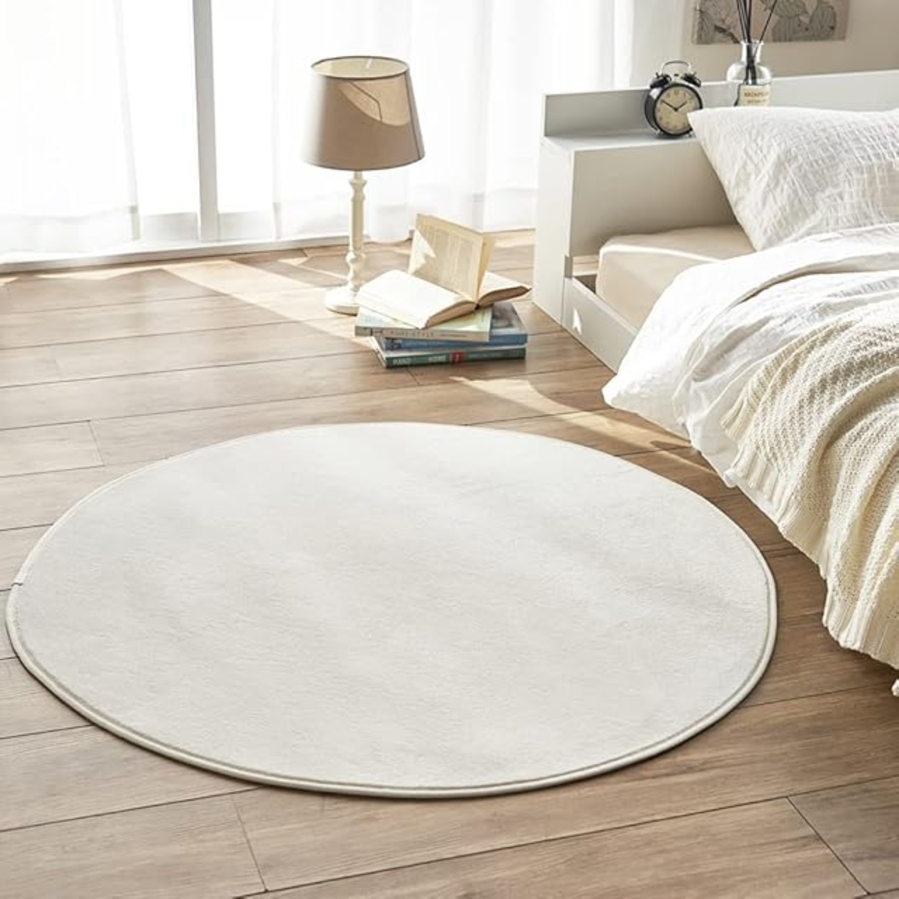 アイリスプラザ フランネルラグ アイボリー 円形 200㎝ 滑り止め付き ラグ 洗える ラグカーペット マット カーペット対応 防ダニ フランネル さらフワ触感 おしゃれ 北欧 じゅうたん
