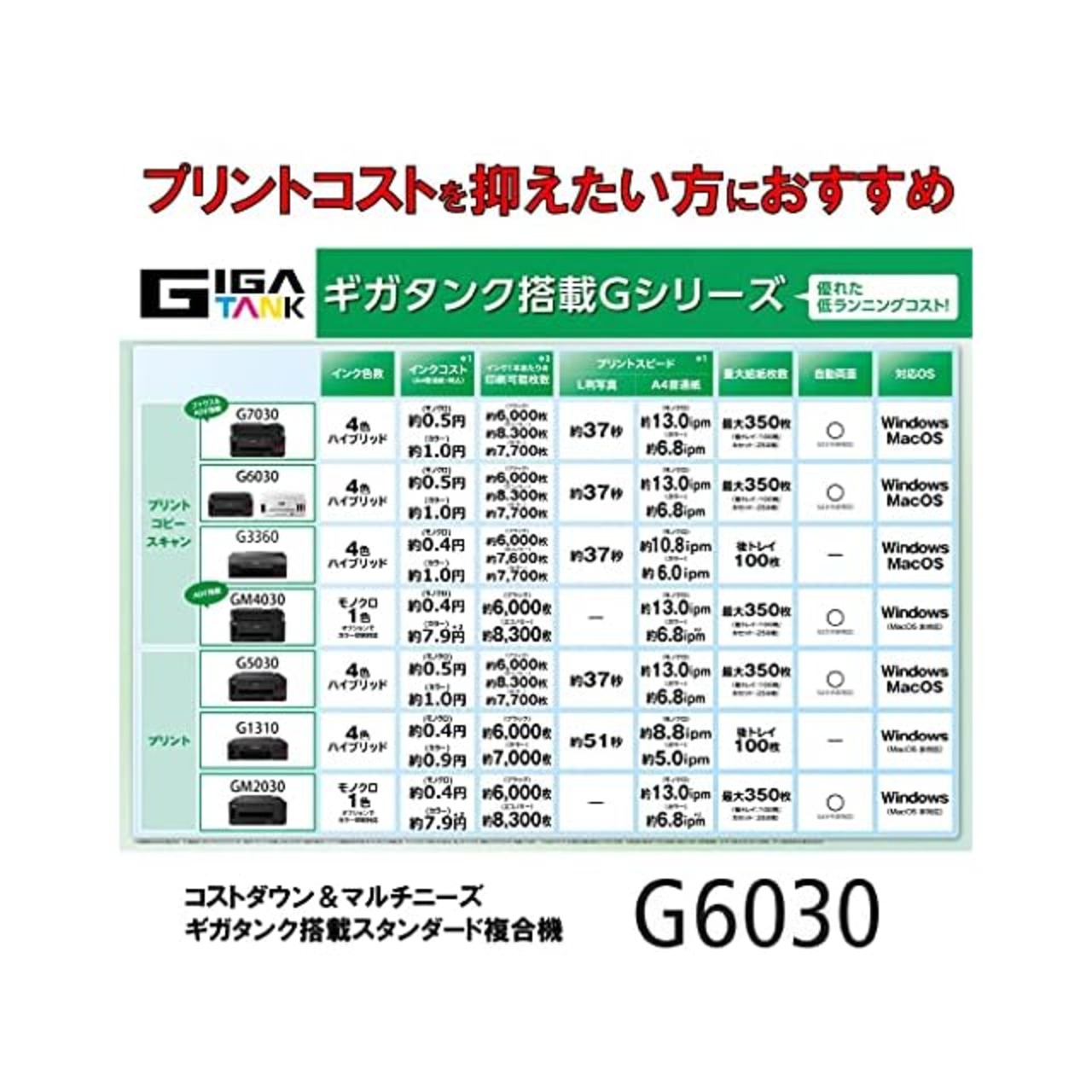 キヤノン Canon プリンター A4インクジェット複合機 特大容量ギガタンク搭載 G6030 ホワイトモデル テレワーク向け