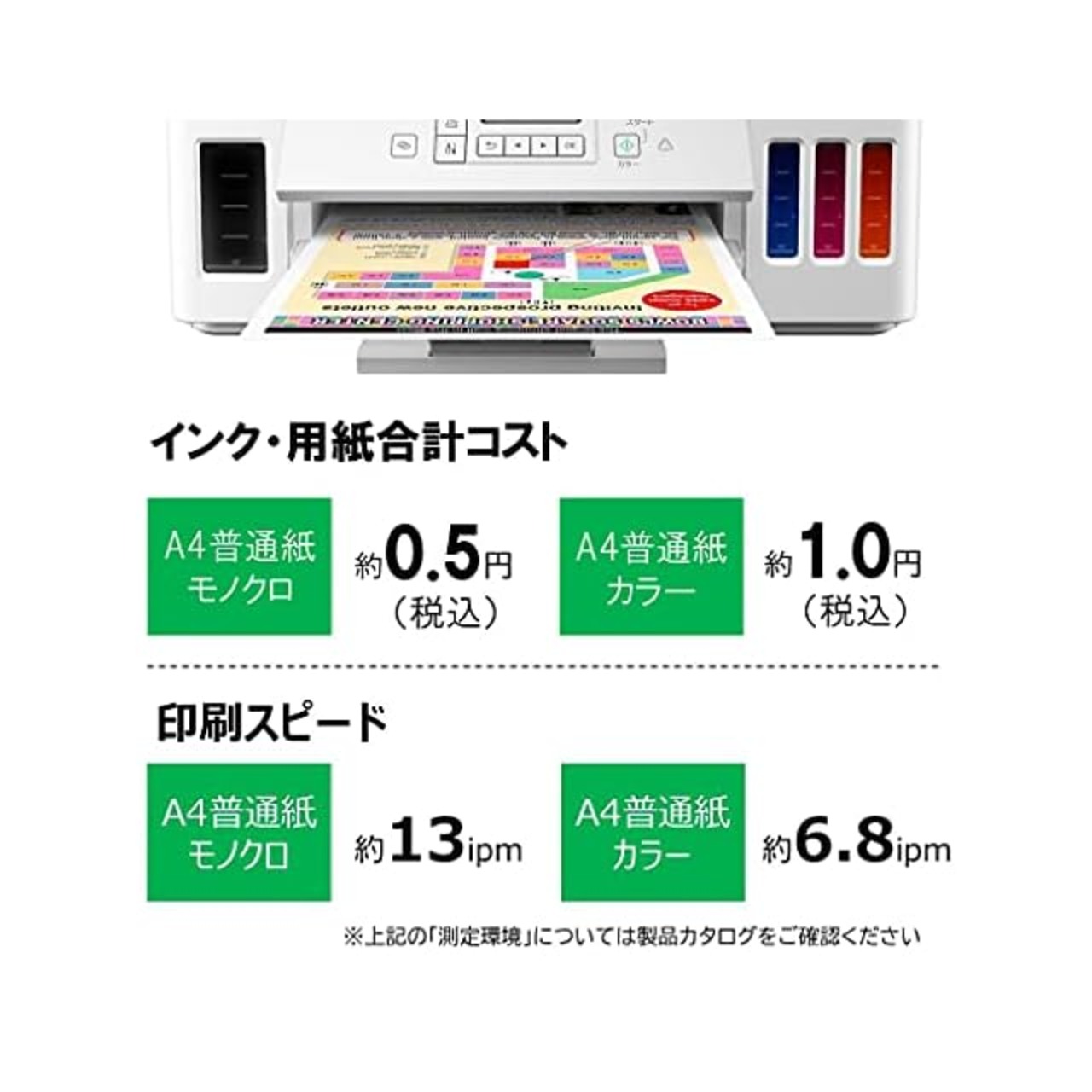 A4普通紙インクコスト:モノクロ約0.4円(税別)、カラー約0.9円(税別)