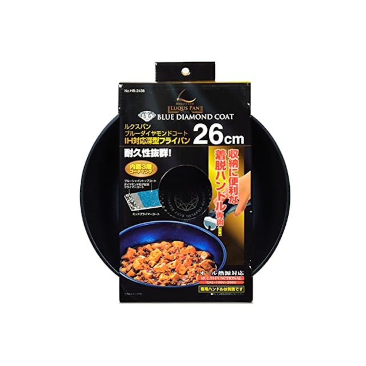 パール金属 取っ手の取れる 深型フライパン 26cm IH対応 ブルーダイヤモンドコート ルクスパン 【取っ手別売り】 HB-2438 ブラック