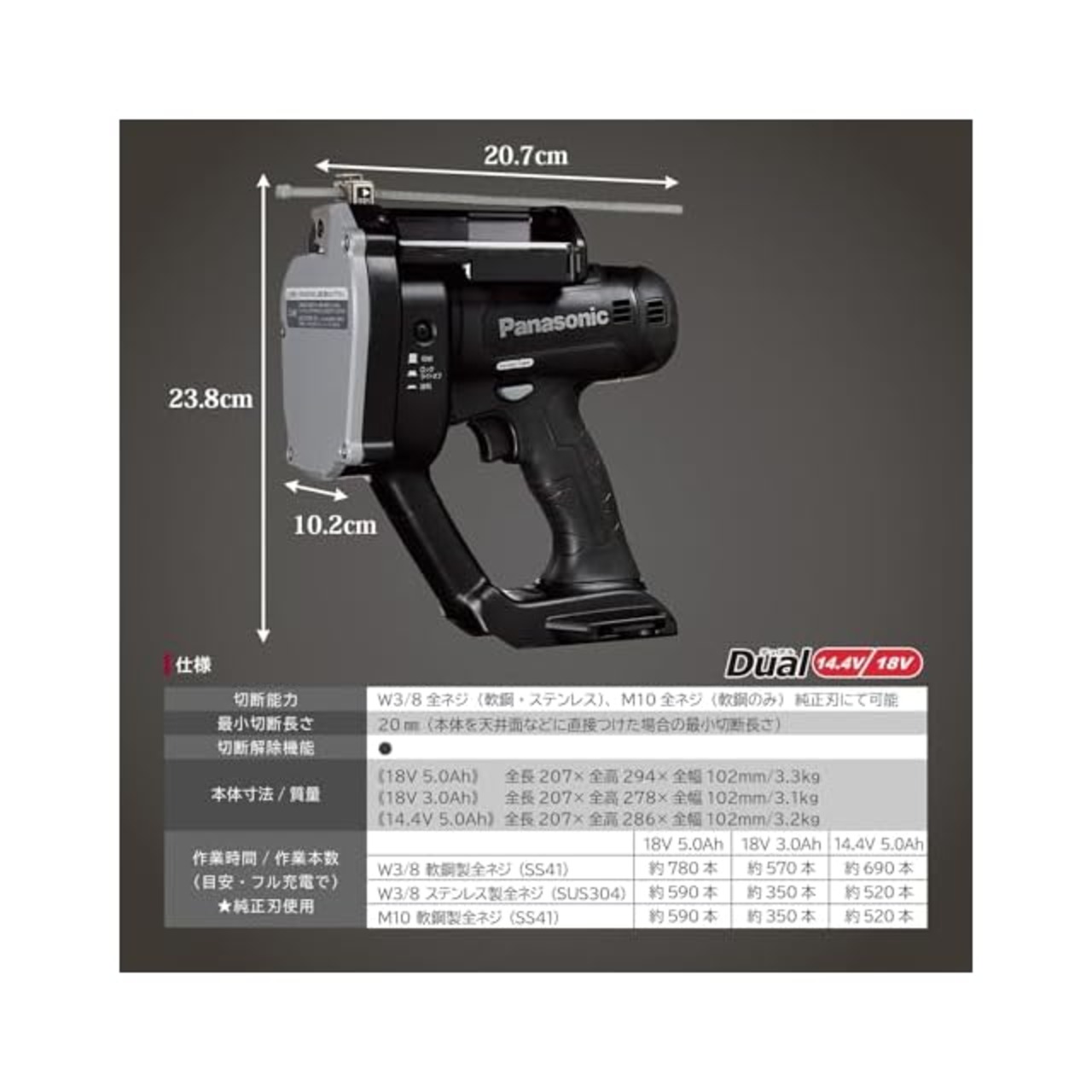 パナソニック(Panasonic) 充電全ネジカッター 14.4V 5.0Ah電池パック×2個/充電器/ケース付き デュアル (14.4V/18V対応) W3/8・最小切断20mm EZ45A8LJ2F-B ブラック