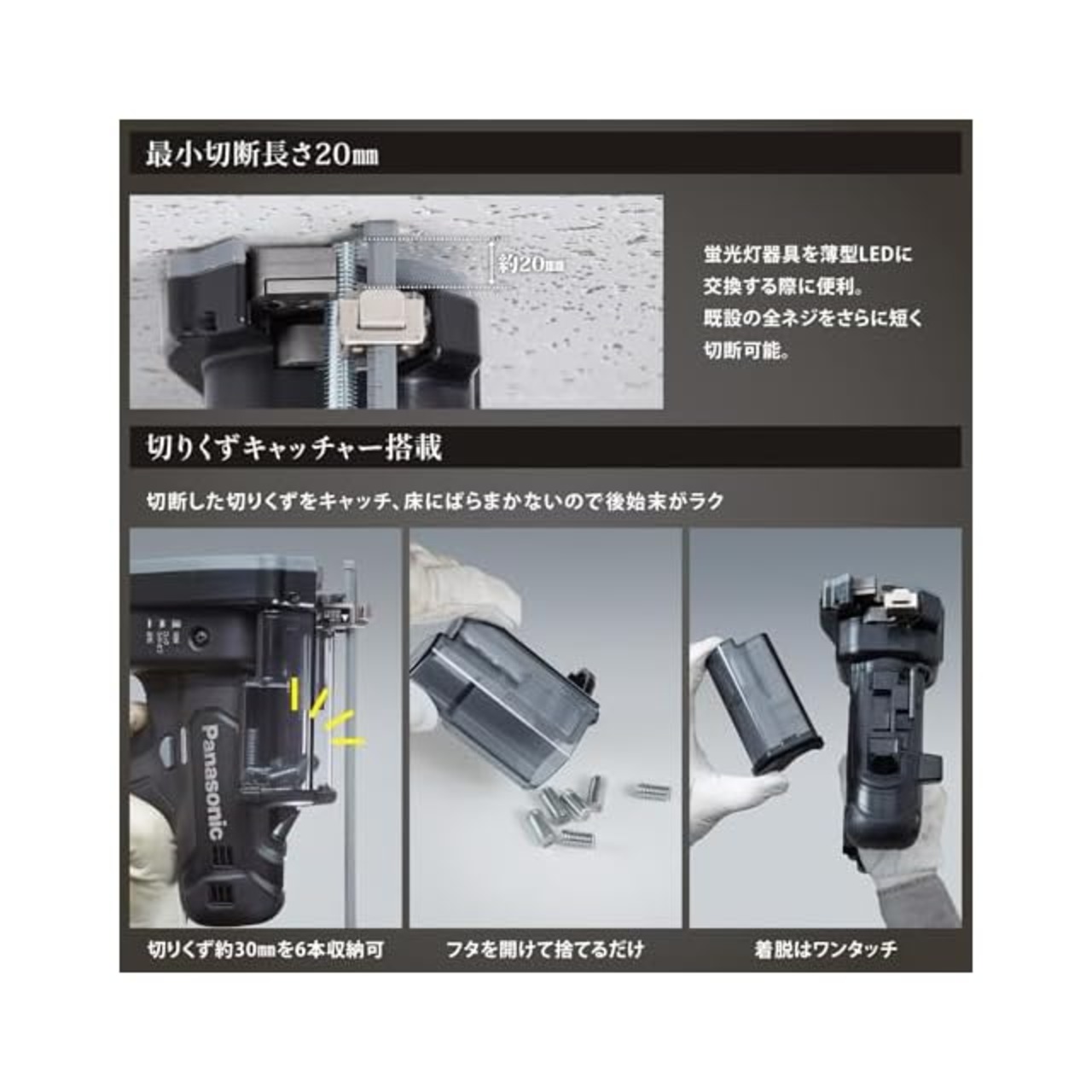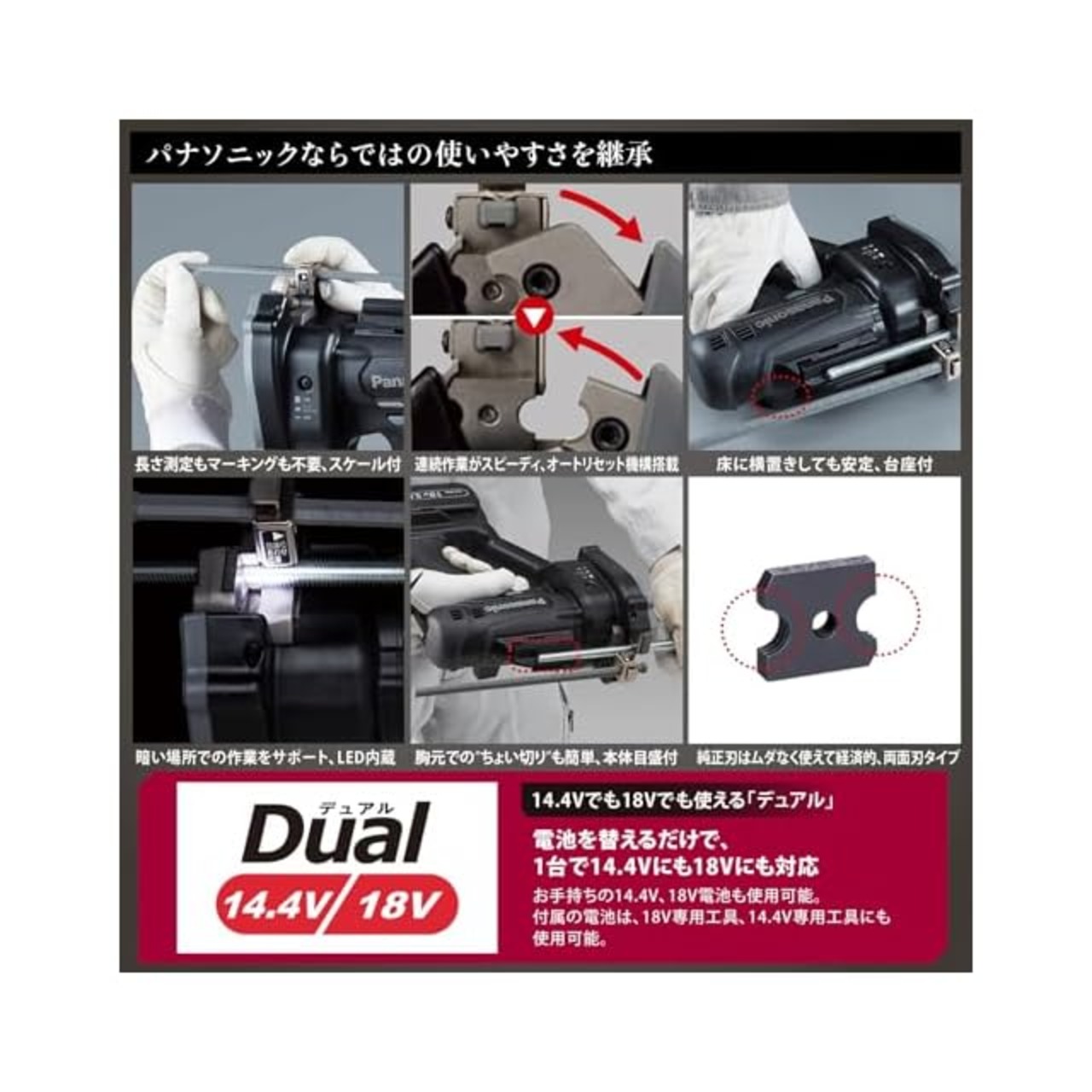 商品名:パナソニック(Panasonic) 充電全ネジカッター 14.4V 5.0Ah電池パック×2個/充電器/ケース付き デュアル (14.4V/18V対応) W3/8・最小切断20mm EZ45A8LJ2F-B ブラック