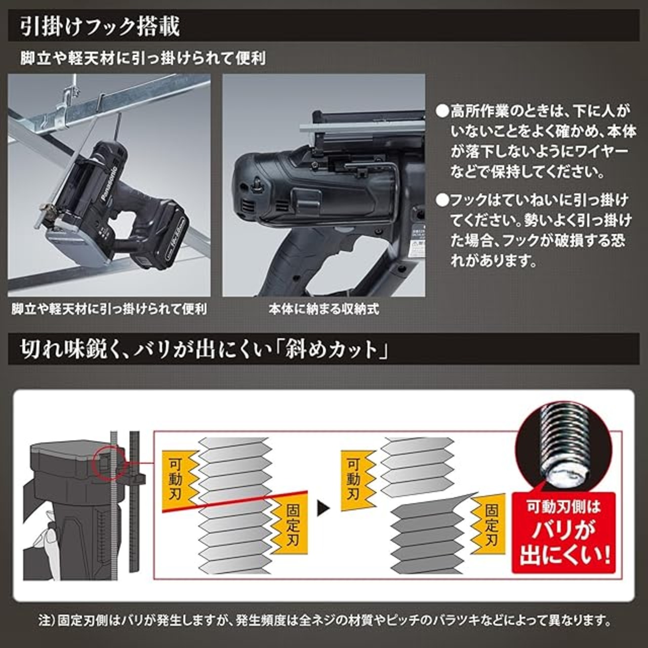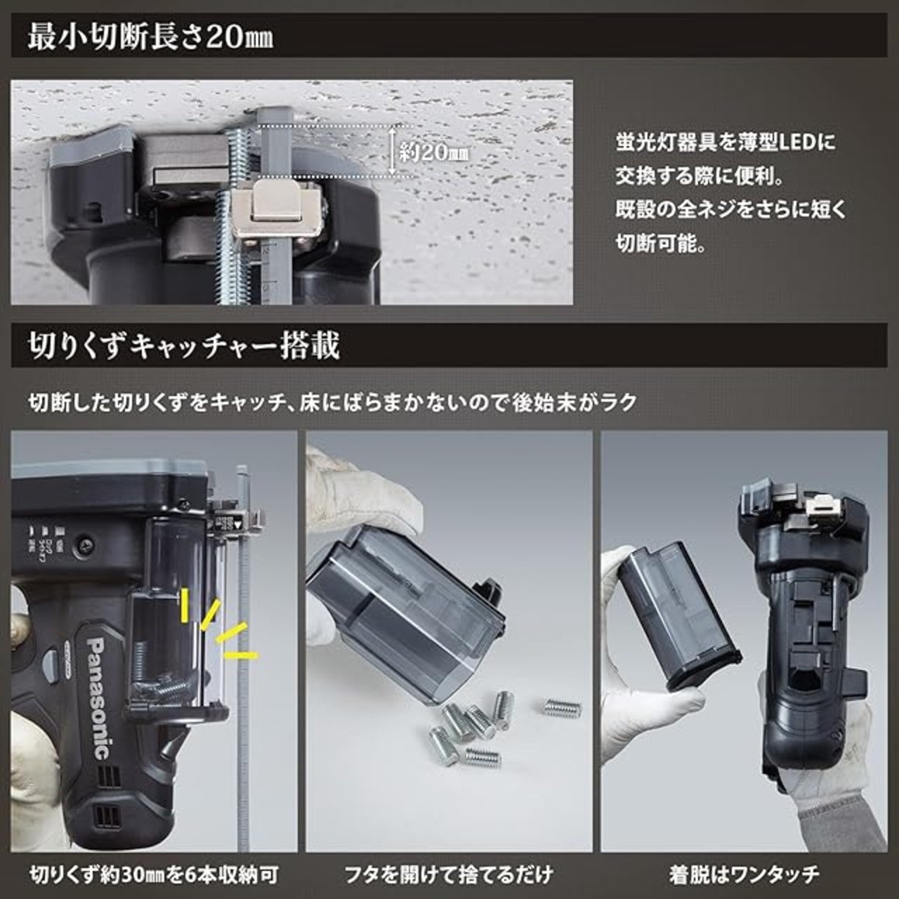 商品名:パナソニック(Panasonic) 充電全ネジカッター 18V 3.0Ah電池パック×2個/充電器/ケース付き デュアル (14.4V/18V対応) W3/8・最小切断20mm EZ45A8PN2G-B ブラック