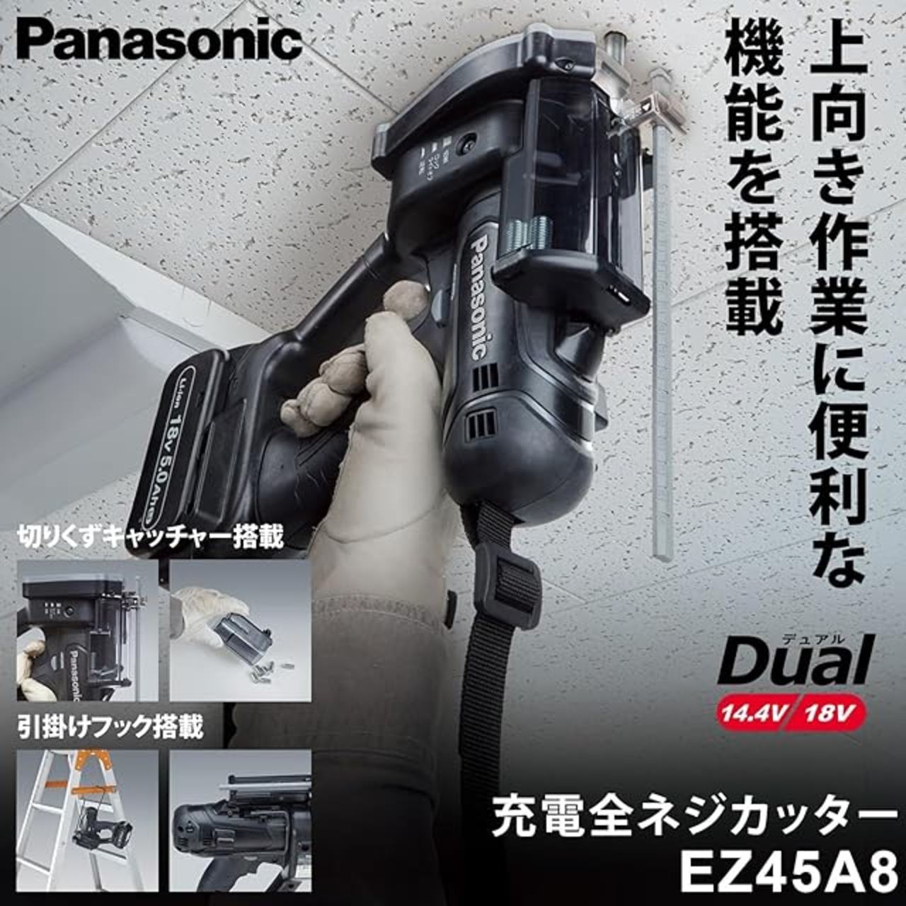 パナソニック(Panasonic) 充電全ネジカッター 18V 3.0Ah電池パック×2個/充電器/ケース付き デュアル (14.4V/18V対応) W3/8・最小切断20mm EZ45A8PN2G-B ブラック