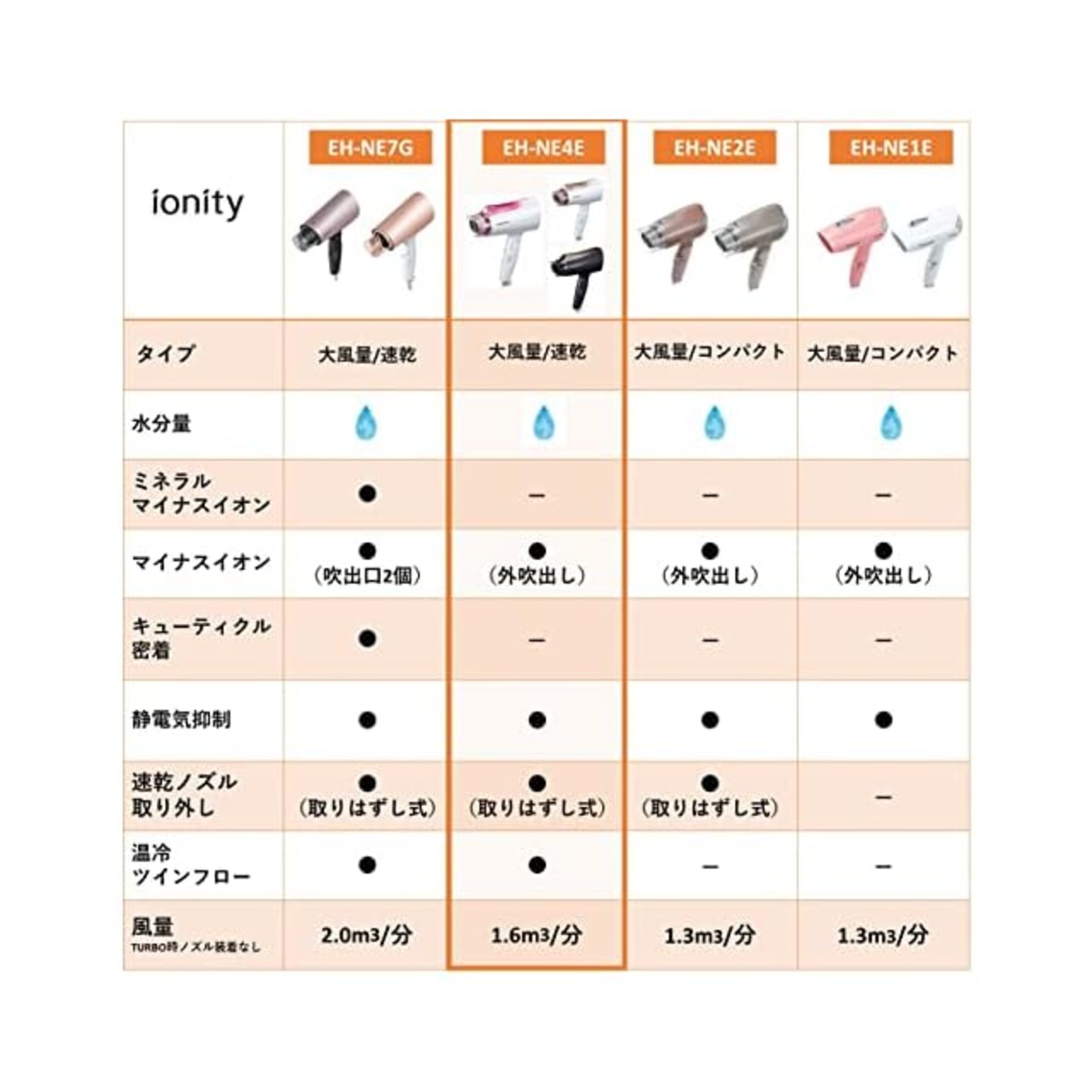 商品名:パナソニック ドライヤー イオニティ 速乾 大風量 ピンク調 EH-NE4E-P