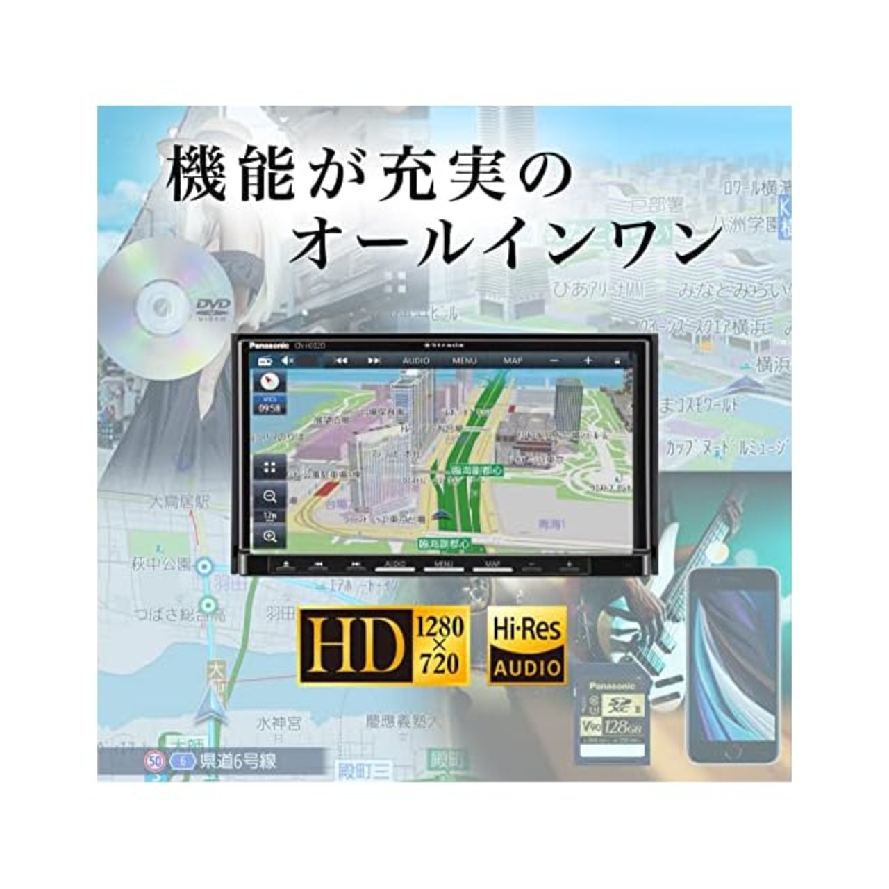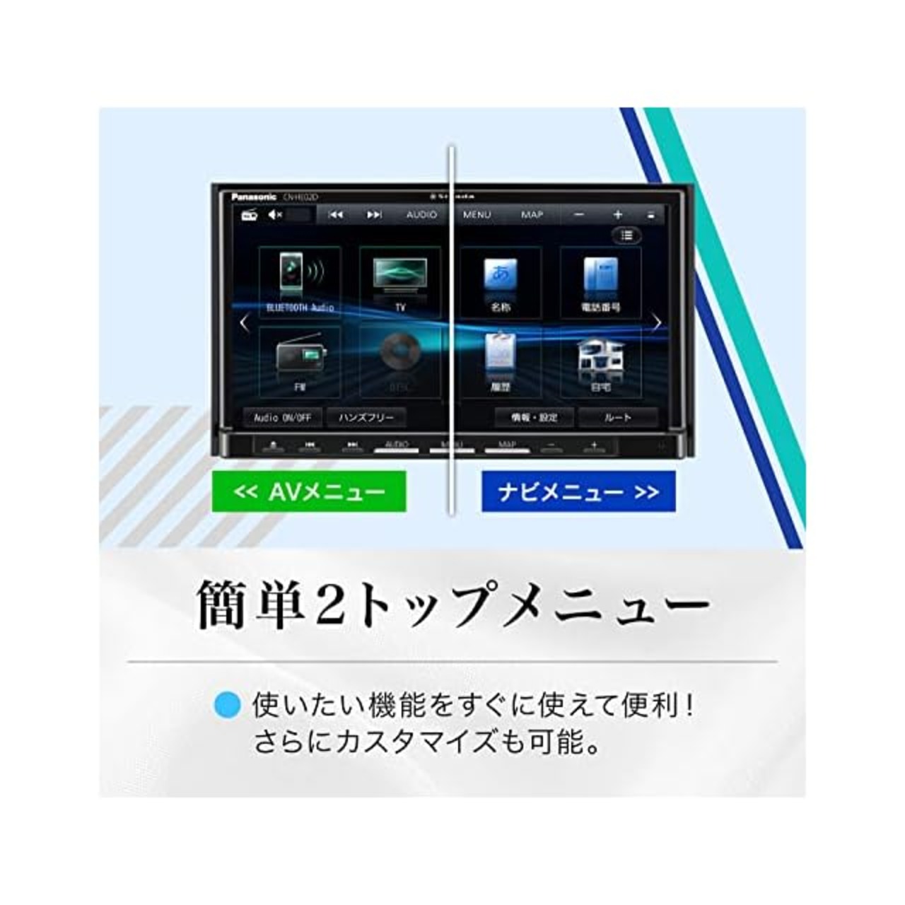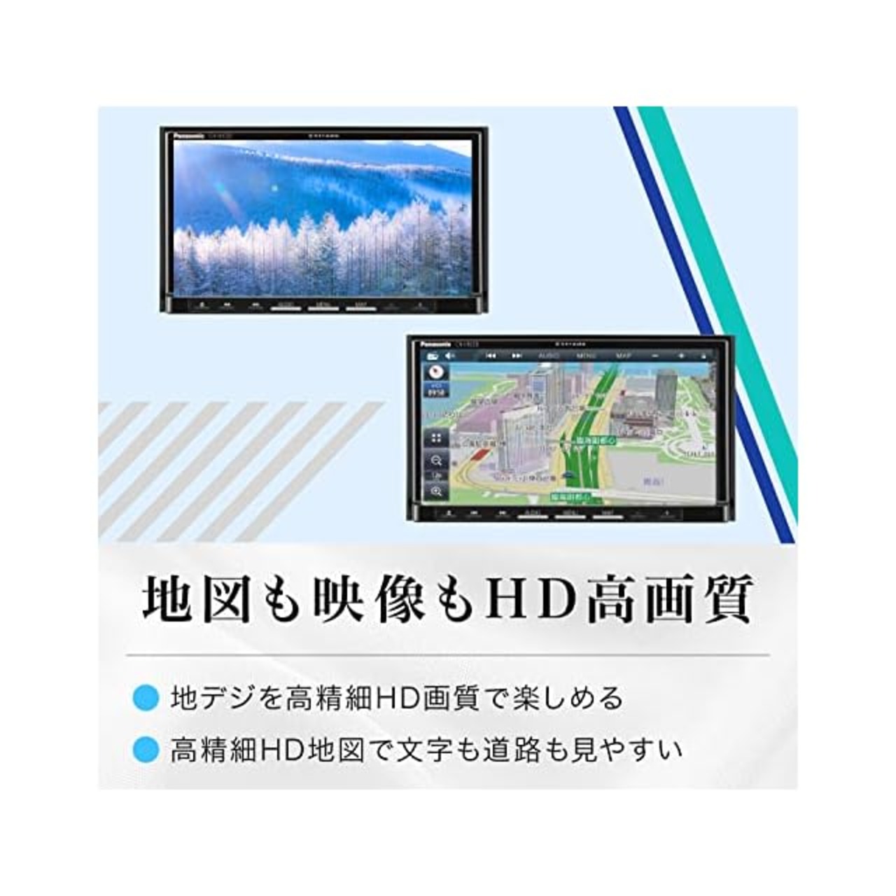 HD美次元マップ、HD液晶、VICS WIDE、Bluetoothといった機能が充実。