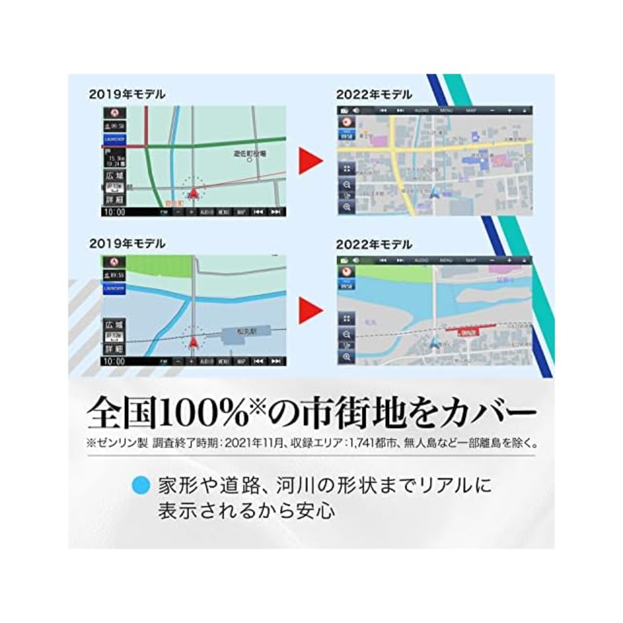 全国の市町村1,741エリア※をカバーした詳細な地図表示。気を付ける場所が分かるドライブサポート。
