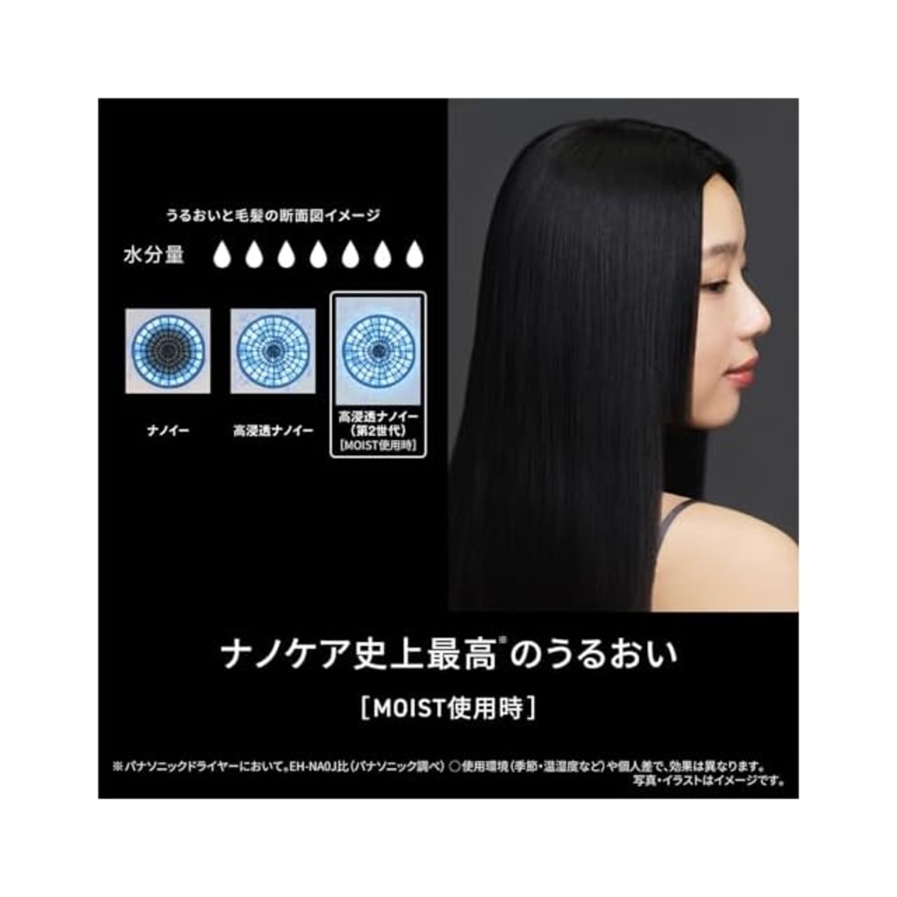 髪へのうるおいは1.2倍※(毛髪水分増加量・当社高浸透ナノイー搭載商品比。2022年発売EH-NA0Jとの比較・当社調べ)