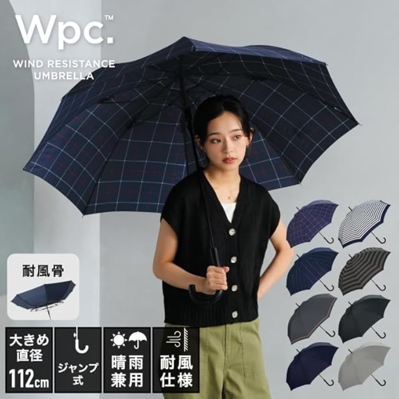 Wpc. 雨傘 WIND RESISTANCE ボーダー 長傘 メンズ 《UVカット・晴雨兼用》 65cm 大きい ジャンプ はっ水 継続 耐風 風に強い 丈夫 遮光 通勤 通学 旅行 男性 女性 レディース シンプル 無地 おしゃれ UX03-043-001