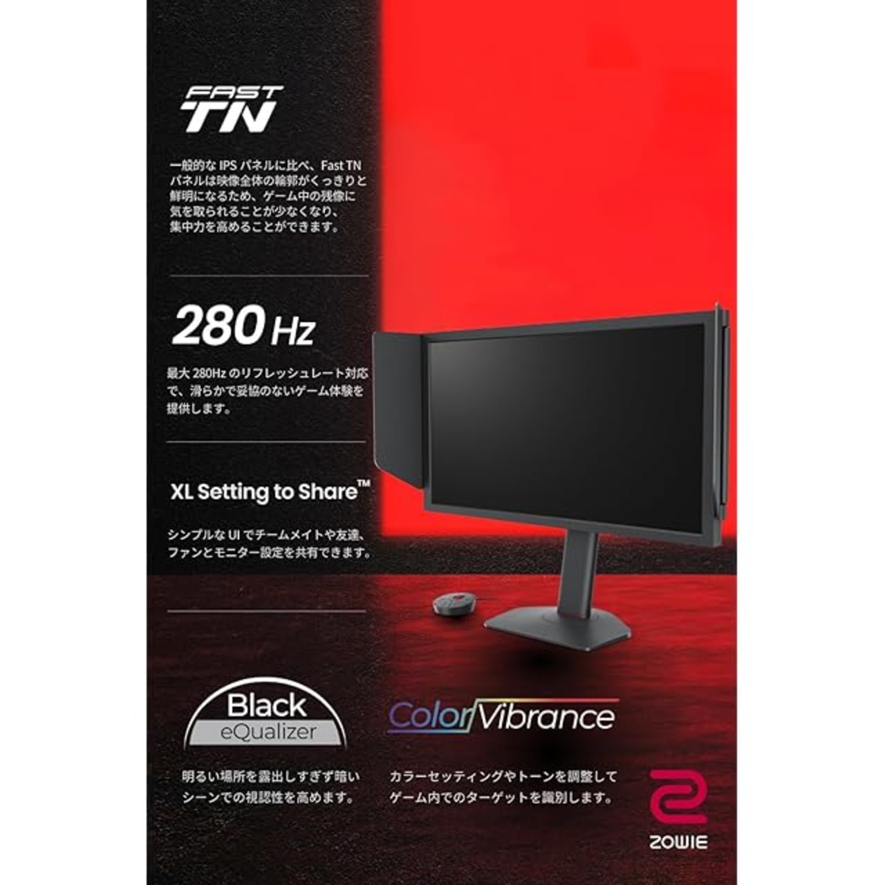 ベンキュージャパン BenQ ZOWIE ゲーミングモニター XL2540X+ 24.1インチ 280Hz フルHD/TNパネル/高速応答速度/Black eQualizer/Color Vibrance/HDMI/DP/ダークグレー/スピーカーなし/esports仕様/昇降/スウィーベル
