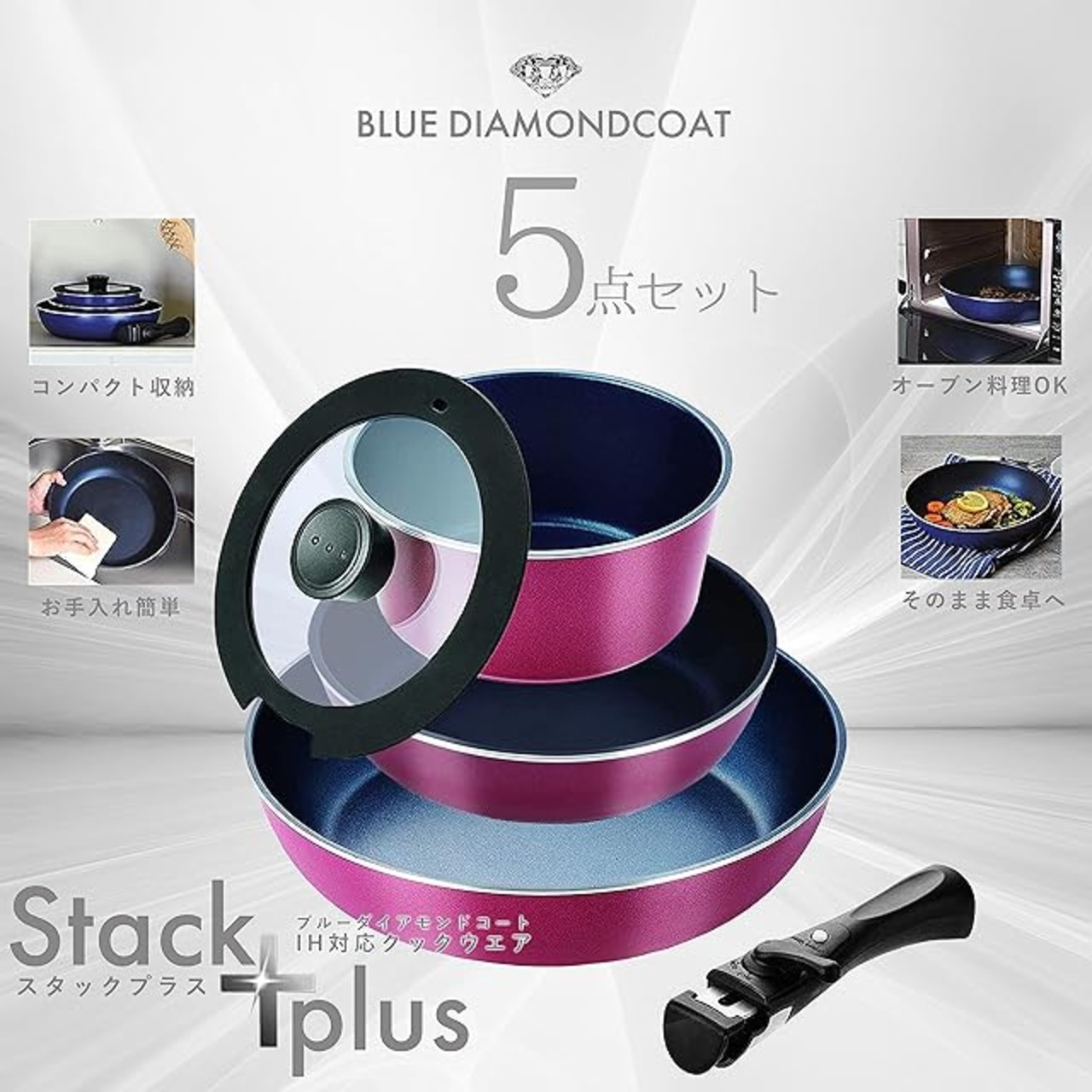 商品名:パール金属 スタックプラス ブルーダイヤモンドコートIH対応クックウェア5点セットA レッド HB-5629