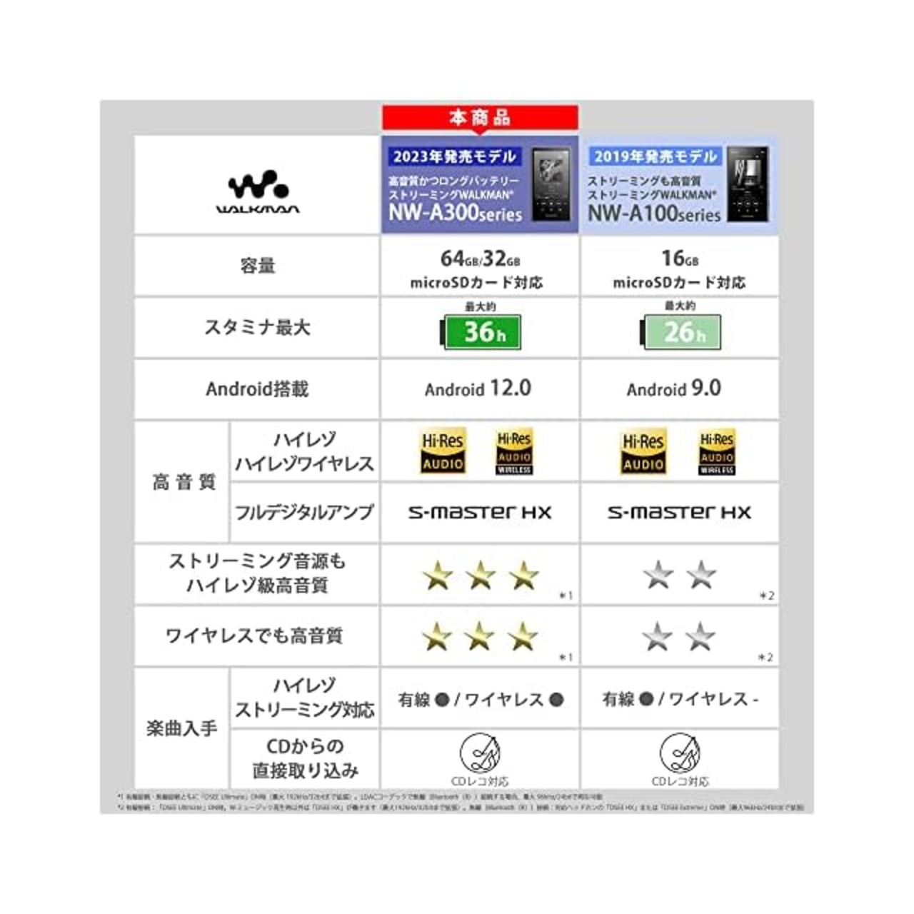 ソニー(SONY) ウォークマン 64GB A300シリーズ NW-A307 : ワイヤレスでも ハイレゾワイヤレス対応/ストリーミング対応/LDAC・aptX (TM) HDコーデック対応/MP3プレーヤー / bluetooth/android搭載/microSD対応 タッチパネル搭載 最大36時間連続再生 360 Reality Audio再生可能モデル ブラック NW-A307 BC