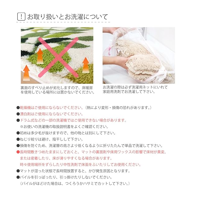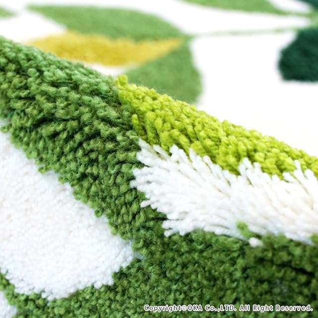 オカ(OKA) 玄関マット リーフグリーン コーナー吸着 約 30 cm× 110 cm アイボリー (ナチュラル 葉っぱ柄 吸着 洗える ラグ カーペット 日本製 大判 ウィルトン織) | inou