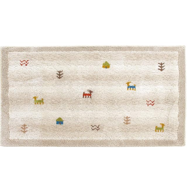 商品名:オカ(OKA) ギャベ コーナー吸着玄関マット 約60cm×110cm ベージュ (ギャベ柄 エスニック 洗える 吸着 ラグ カーペット 日本製 大判)