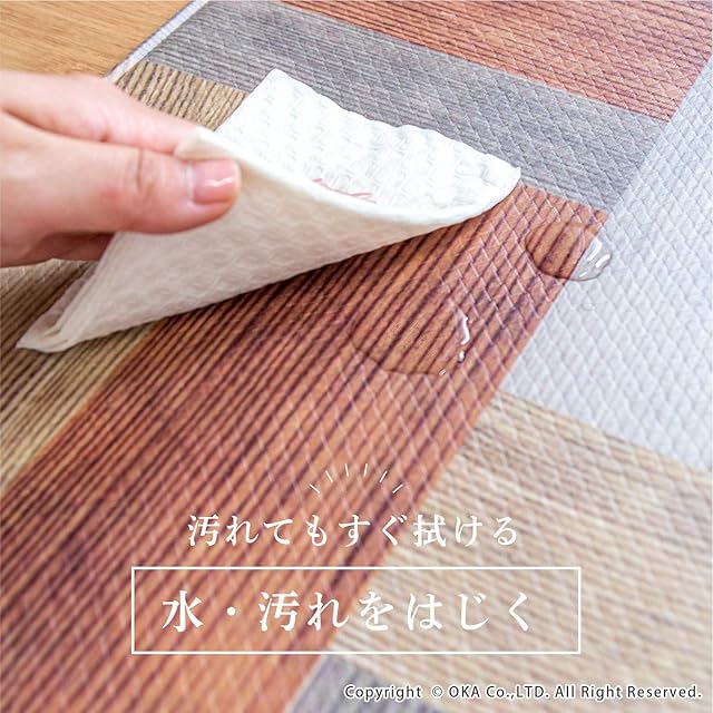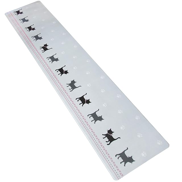 商品名:オカ(OKA)) 拭けるキッチンマット 約45cm×240cm グレー(キャット)(拭くだけ PVC ビニール)