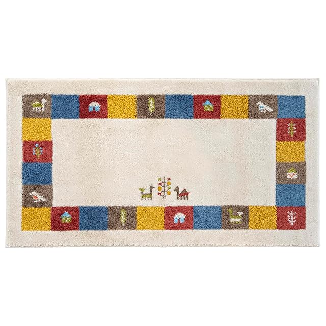 商品名:オカ(OKA) コーナー吸着玄関マット シエラ 約60cm×110cm ベージュ(ギャッベ柄 ギャべ柄 エスニック アジアン 抗菌 防臭 洗える 屋内 ずれにくい おしゃれ)