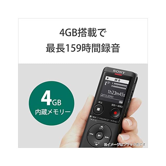 薄型軽量の持ち運びやすい本体に、クリアに録音できる高性能マイクを搭載したICレコーダー