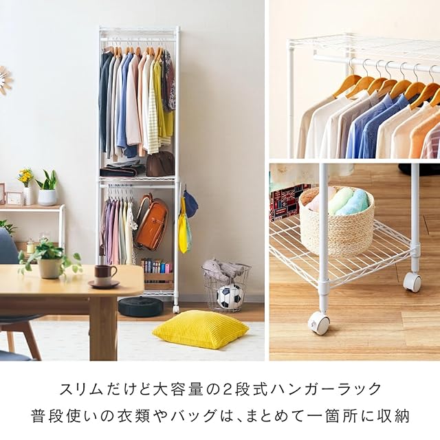 商品名:ドウシシャ ルミナス 2段ワードローブ ホワイト EHL2WD-60 幅61×奥行41×高さ209cm ルミナスラテ0 大容量でスッキリ衣類収納 スチールラック ハンガーラック 幅60