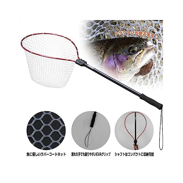 商品名:プロックス(PROX) ラバーランディングネット ディープ 19型/ネットクリア/深さ60cm PX70419DCRK ランディングネット 【魚に優しいラバーネット】