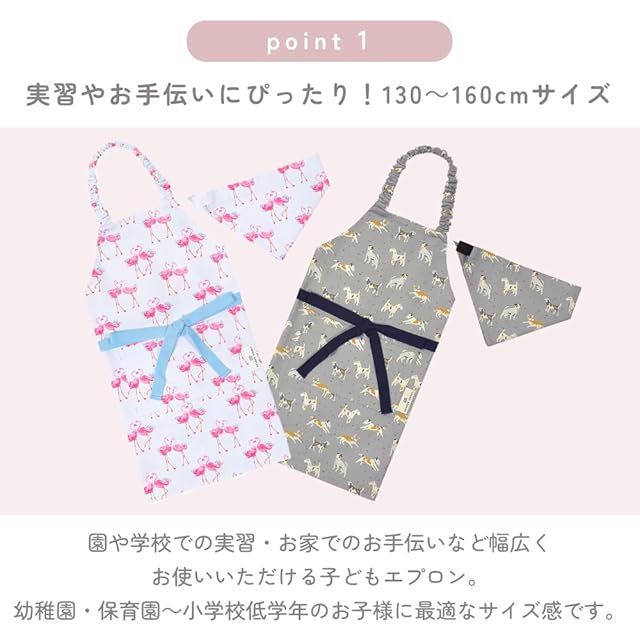 商品名:COLORFUL CANDY STYLE LAURA ASHLEY 子供用 キッズエプロン 女の子 三角巾 セット 小学生 130-160 着脱簡単 Pretty Flamingo N1253130