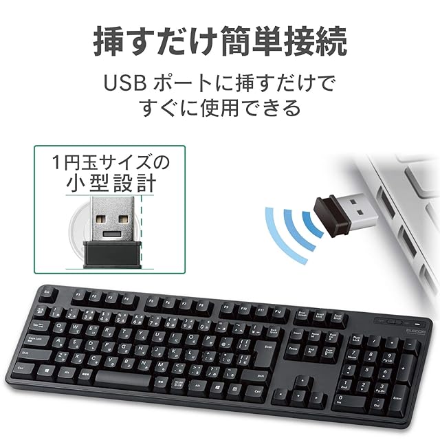 商品名:エレコム キーボード ワイヤレス (レシーバー付属) メンブレン フルキーボード ブラック TK-FDM106TXBK
