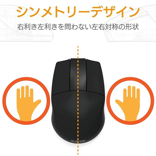 左右対称フォルムで、共有PCなど不特定多数が触る環境でも右利き左利き問わず使いやすい形状です。