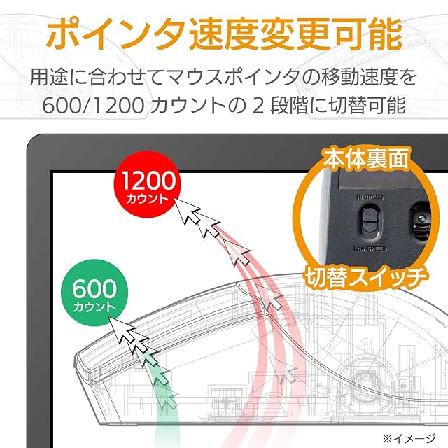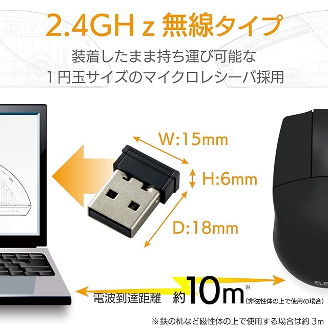 商品名:エレコム マウス ワイヤレス (レシーバー付属) Mサイズ CAD向け 3ボタン ホイールレス 左右対称 600/1200カウント2段階調整 ブラック M-CAD01DBBK