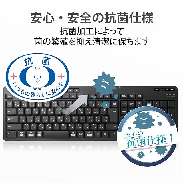商品名:エレコム ワイヤレス フルキーボード 静音設計 マウスセット 抗菌 ブラック TK-FDM116SKMBK