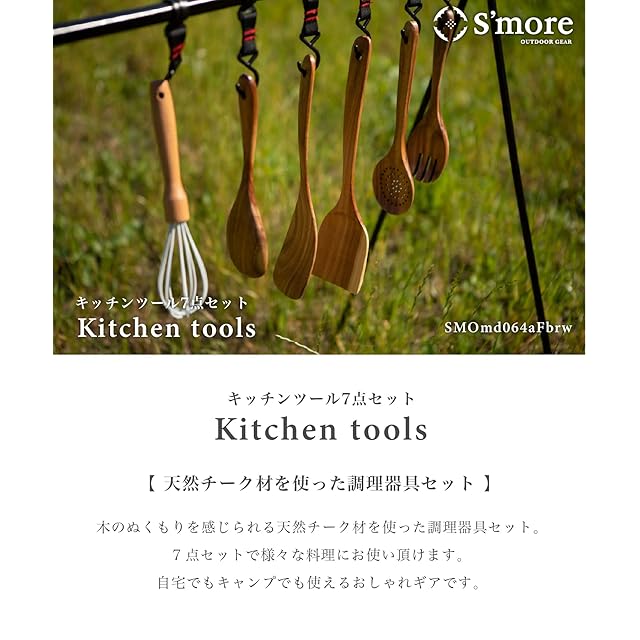 商品名:S'more (スモア) Kitchen tools 7set キッチンツール セット 調理器具 木製 天然チーク材 クッキングツール 7点セット ベージュ FREE