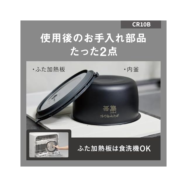 気になるお手入れをかんたんに。「お手入れ部品たった2点」「ワンタッチふた加熱板(食洗機対応)」「圧力お手入れ機能」搭載