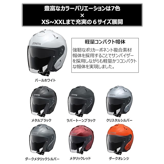機能:開閉式ダイレクトベンチレーション、開閉式サンバイザー、PINLOCKシールド標準装備(PINLOCKシートは別売)、リアリフレクトステッカー、ワンタッチバックル式チンストラップ、吸汗・速乾性に優れ、銀イオンが抗菌消臭効果を発揮するSilverCoolTM内装