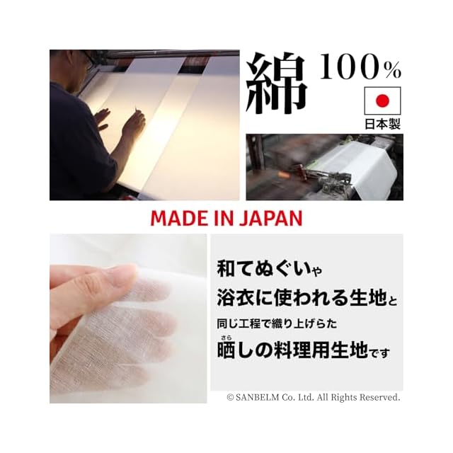商品名:サンベルム (sanbelm) 調理用品 蛍光増白剤不使用 無蛍光晒 綿100% 木綿 日本製 45×150cm ホワイト K42013 ビストロ先生 お料理ガーゼ