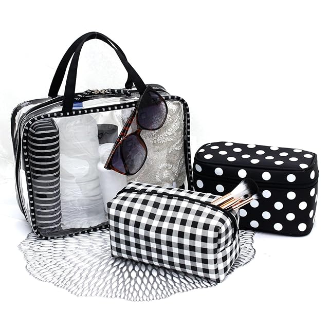 商品名:[ハピタス] めざましテレビで紹介されました!(20240424) クリアポーチ トラベルグッズ コスメポーチ 化粧ポーチ トラベルポーチセット 7122Dブラック