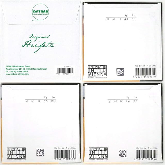 バイオリン弦の定番ドミナントのA,D,G線に人気のE線ゴールドブラカットの組み合わせです