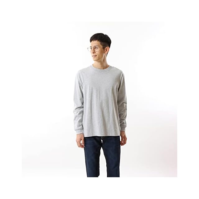 [ヘインズ] ビーフィー ロングスリーブ ロンT Tシャツ 長袖 丸首 BEEFY-T 綿100% 丸胴仕様 タグレス仕様 ビーフィロングスリーブTシャツ 2枚組 肉厚生地 無地 H5186-2 メンズ ヘザーグレー XL | inou