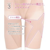 【ヒップもおなかもすっきり】フロントのパワー切り替えで、おなかを押さえ、ヒップ脇からヒップ下内股にかけてのパワー切り替えでヒップアップと太ももすっきり