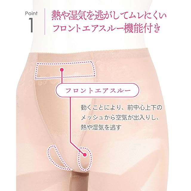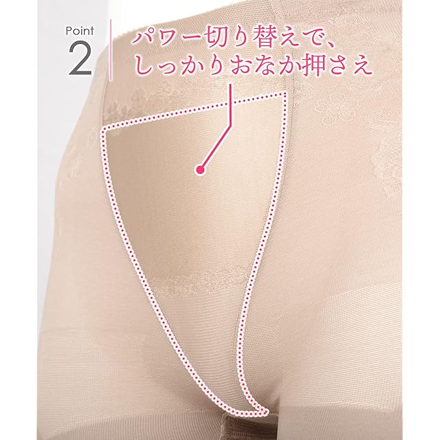 【ヒップもおなかもすっきり】フロントのパワー切り替えで、おなかを押さえ、ヒップ脇からヒップ下内股にかけてのパワー切り替えでヒップアップと太ももすっきり