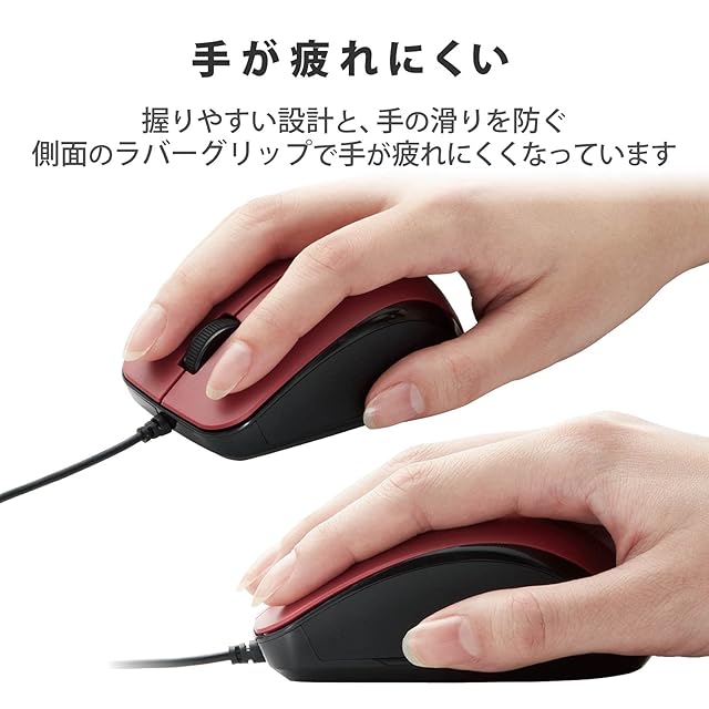 商品名:エレコム マウス 有線 M-BL27UBSKRD 3ボタン ラバーグリップ 静音 抗菌 レッド