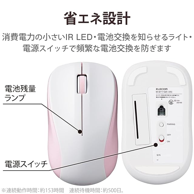商品名:エレコム マウス ワイヤレスマウス Bluetooth 3ボタン Mサイズ 抗菌 ピンク M-BY11BRKPN