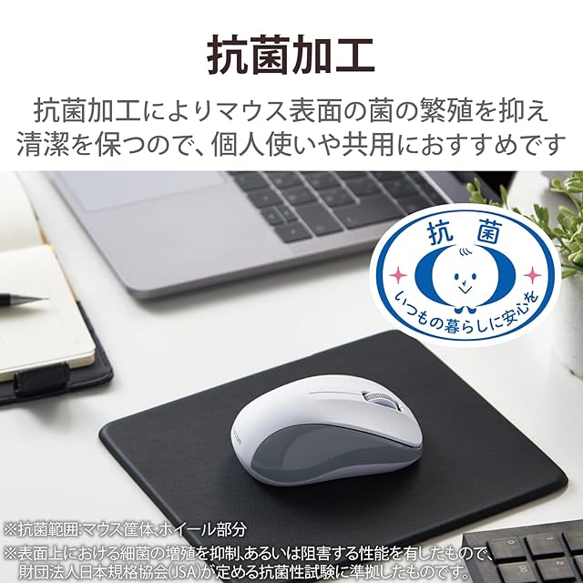 商品名:エレコム マウス ワイヤレスマウス Bluetooth 静音 3ボタン Sサイズ 抗菌 ホワイト M-BY10BRSKWH