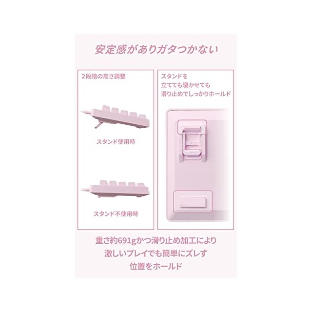 商品名:エレコム ゲーミングキーボード V-custom VK300S 有線 RGB テンキーレス 65%サイズ メカニカル ネオクラッチキーキャップ 銀軸 スピードリニア USBポート搭載 ピンク TK-VK300SPN