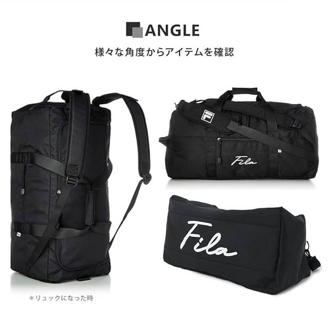 商品名:[フィラ] ボストンバッグ リュック 大容量 50L 3WAY 旅行バッグ ショルダーバッグ スポーツバッグ 2タイプロゴ 筆記体 正規体 ベルト取り外し可能 大型収納 0.63kg fm2276-fm2334 ブラック×ターコイズ(筆記体ミニ)